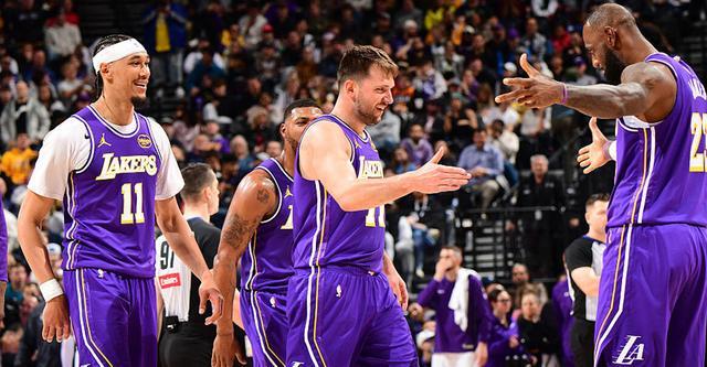 湖人队东契奇45分10板14助5断,詹姆斯28分7板10助,斯马特17分,海斯16分,八村垒13分,拉拉维亚12分;
