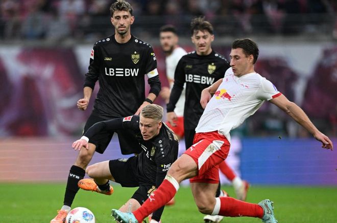 本场比赛莱比锡排出433阵型。扬-迪奥曼德、罗慕洛和努萨的进攻三叉戟联袂出击。阿桑-韦德拉奥果、赛瓦尔德和鲍姆加特纳组成3中场。巴库、威利-奥尔班、卢克巴和劳姆4后卫首发出战。古拉西奇担任首发门将。莱比锡首发阵容总身价1.92亿欧元,而斯图加特首发阵容总身价1.89亿欧元。