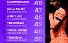 五大联赛成功过人排行:格博霍居首,多库、库杜斯并列次席
